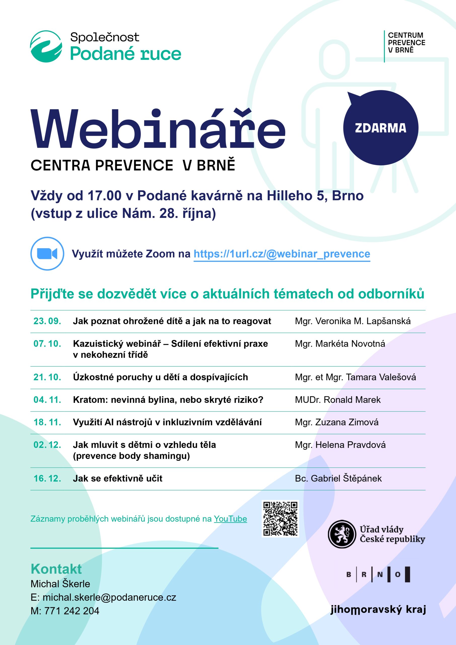 Pozvánka na podzimní webináře Centra prevence v Brně